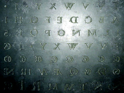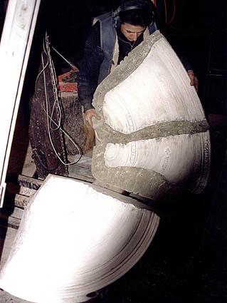 Marble engraved for the moulding of the letters which will be used for the inscriptions of the bells.